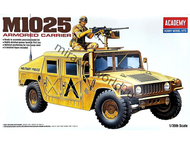 Сборная модель американского военного автомобиля повышенной проходимости M1025 HMMWV Armoured Carrier в масштабе 1/35 от фирмы Academy (артикул 13241).