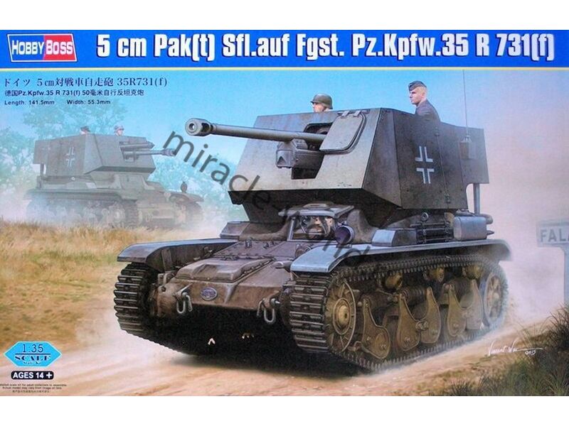 Сборная модель немецкой самоходной артиллерийской установки 5 cm PaK(t) Sfl. auf Fgst. Pz.Kpfw.35 R 731(f) в масштабе 1/35 от фирмы Hobby Boss (артикул 83808).
