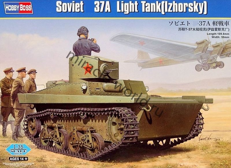 Сборная модель малого плавающего танка Танк тип 37А (Ижорский) в масштабе 1/35 от фирмы Hobby Boss (артикул 83821).