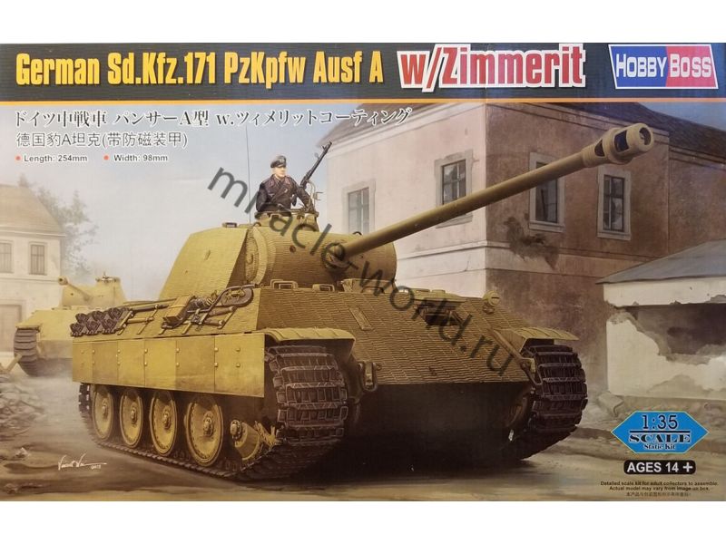 Сборная модель немецкого среднего танка Sd.Kfz.171 Pz.Kpfw.V Ausf.A "Panther" с циммеритом в масштабе 1/35 от фирмы Hobby Boss (артикул 84506).