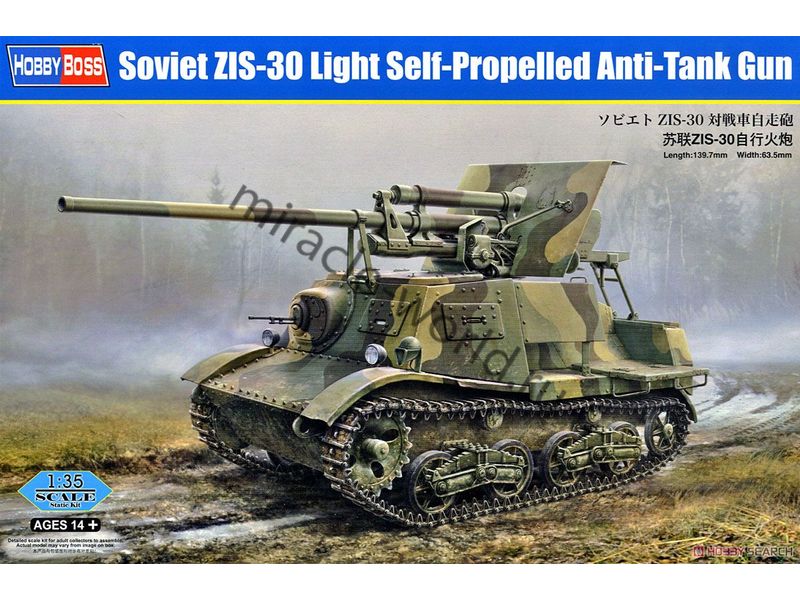 Сборная модель советской самоходной артиллерийской установки на базе на базе гусеничного артиллерийского тягача Т-20 «Комсомолец» Автомобиль тип 30 (57-мм) в масштабе 1/35 от фирмы Hobby Boss (артикул 83849).