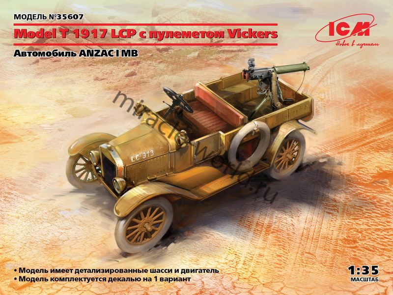Сборная модель американского автомобиля Ford Model T образца 1917г. LCP c пулеметом Vickers в масштабе 1/35 от фирмы ICM (артикул 35607).