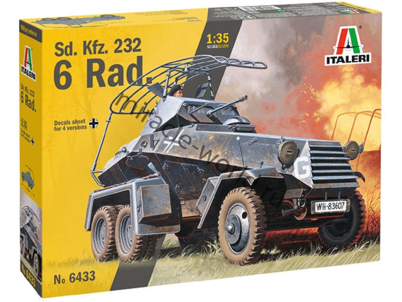 Сборная модель немецкого тяжелого бронеавтомобиля Sd.Kfz.232 (6-Rad) / Schwerer Panzerspahwagen 6-Rad в масштабе 1/35 от фирмы Italeri (артикул 6433).