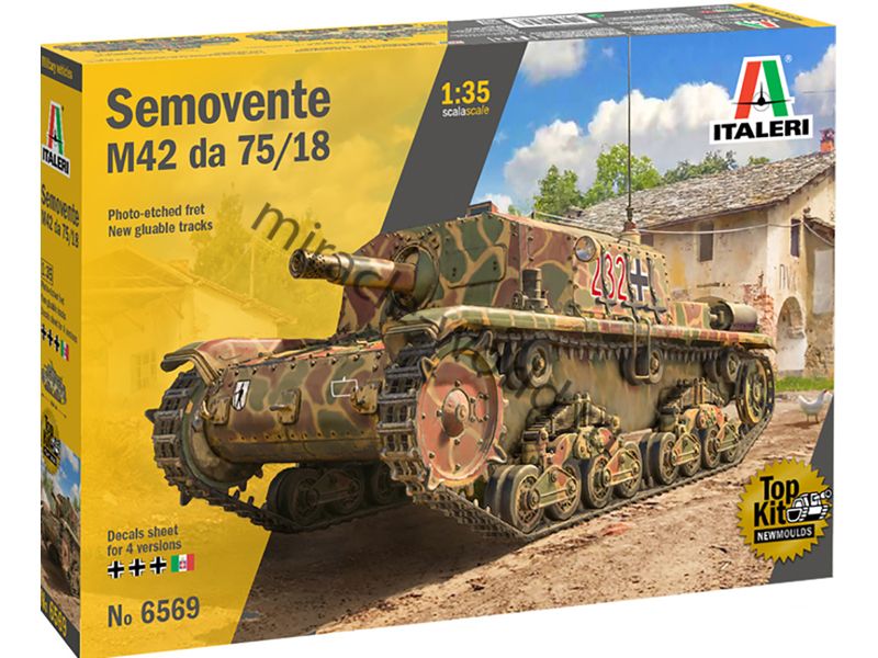 Сборная модель итальянской самоходной артиллерийской установки Semovente M42 da 75/18 в масштабе 1/35 от фирмы Italeri (артикул 6569).