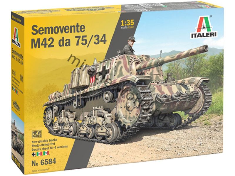 Сборная модель итальянской самоходной артиллерийской установки Semovente M42 da 75/18 в масштабе 1/35 от фирмы Italeri (артикул 6584).
