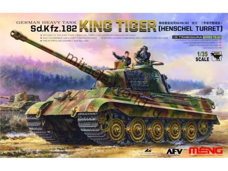 Сборная модель немецкого тяжелого танка Sd.Kfz.182 Pz.Kpfw.VI Ausf.B "King Tiger" (Henschel) в масштабе 1/35 от фирмы Meng Model (артикул TS-031).