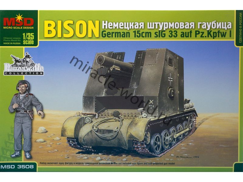 Сборная модель немецкой самоходной артиллерийской установки sIG 33 (Sf) на базе Pz.Kpfw.I "Bison" / Sturmpanzer I (150-мм) в масштабе 1/35 от фирмы MSD / Maquette (артикул 3508).