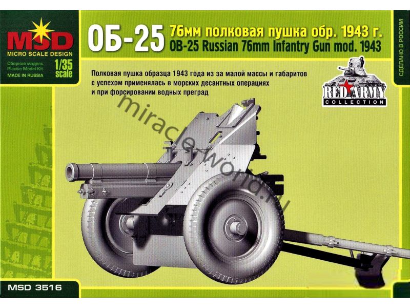 Сборная модель советской полковой пушки 76-мм полковая пушка образца 1943г. (ОБ-25) в масштабе 1/35 от фирмы MSD / Maquette (артикул 3516).