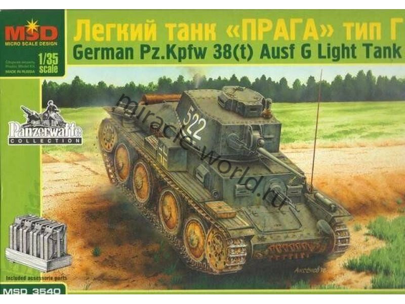Сборная модель немецкого легкого танка Sd.Kfz.140 Pz.Kpfw.38(t) Ausf.G "Prague" / LT vz.38 в масштабе 1/35 от фирмы MSD / Maquette (артикул 3540).