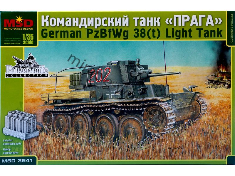 Сборная модель немецкого легкого танка Pz.Bef.Wg.38(t) "Prague" / LT vz.38 (командирский вариант) в масштабе 1/35 от фирмы MSD / Maquette (артикул 3541).