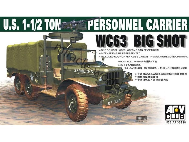 Сборная модель американского грузового автомобиля повышенной проходимости Dodge WC63 "Big Shot" / WC62 / WC63 MG (3in1) в масштабе 1/35 от фирмы AFV Club (артикул AF35S18).