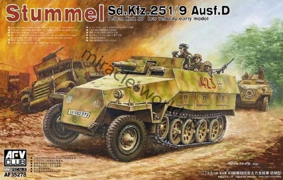 Сборная модель немецкого полугусеничного бронеранпортера Sd.Kfz.251/9 Ausf.C (early) c 75-мм KwK 37 L/24 в масштабе 1/35 от фирмы AFV Club (артикул AF35278).