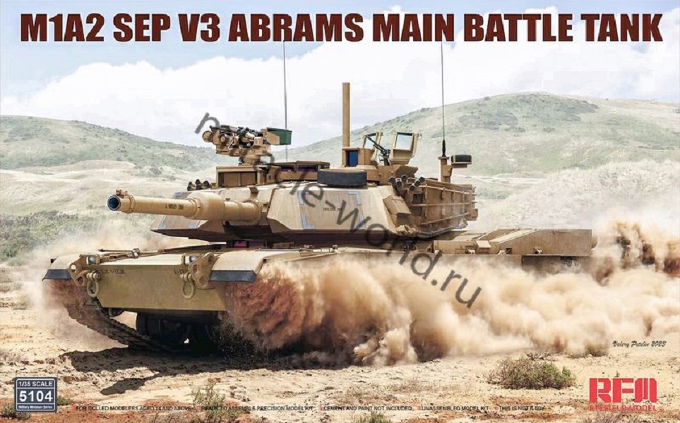 Сборная модель американского основного боевого танка M1A2 SEP V3 "Abrams" в масштабе 1/35 от фирмы Rye Field Model (артикул RM-5104).