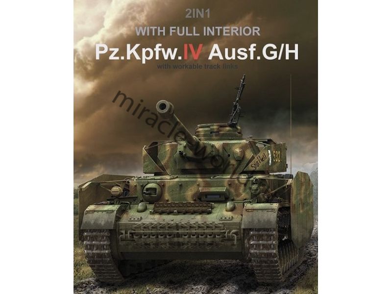 Сборная модель немецкого среднего танка Sd.Kfz.161 Pz.Kpfw.IV Ausf.G / Ausf.H с экранами и интерьером в масштабе 1/35 от фирмы Rye Field Model (артикул RM-5055).