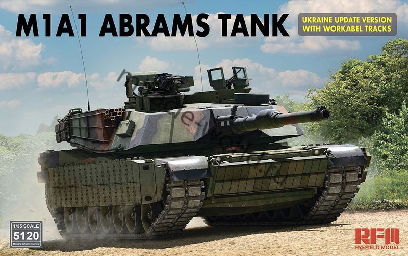 Сборная модель американского основного боевого танка M1A1 "Abrams" Ukraine Update Version + рабочие траки в масштабе 1/35 от фирмы Rye Field Model (артикул RM-5120).