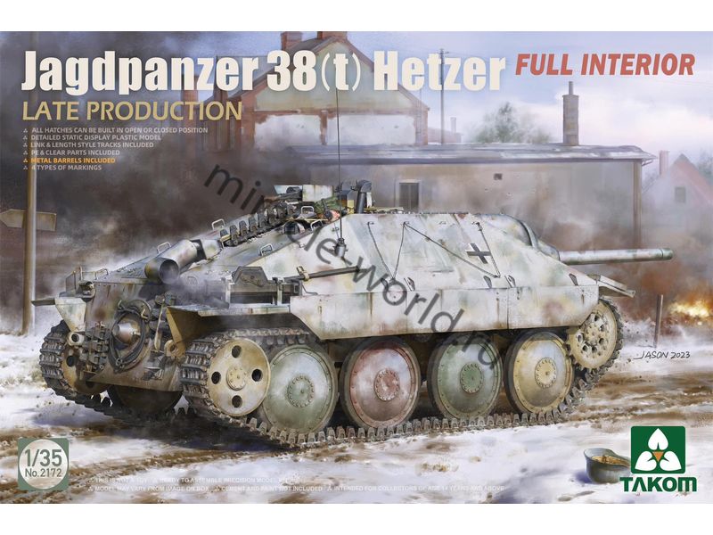 Сборная модель немецкой самоходной артиллерийской установки Sd.Kfz.138/2 Jagdpanzer 38(t) "Hetzer" (late) с полным интерьером в масштабе 1/35 от фирмы Takom (артикул 2172).