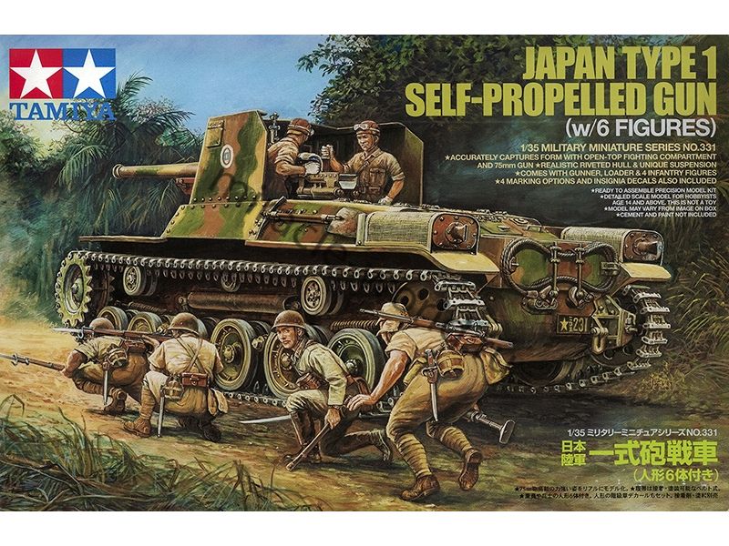 Сборная модель японской самоходной артиллерийской установки Type 1 "Ho-Ni" (75-мм) с экипажем и пехотой в масштабе 1/35 от фирмы Tamiya (артикул 35331).