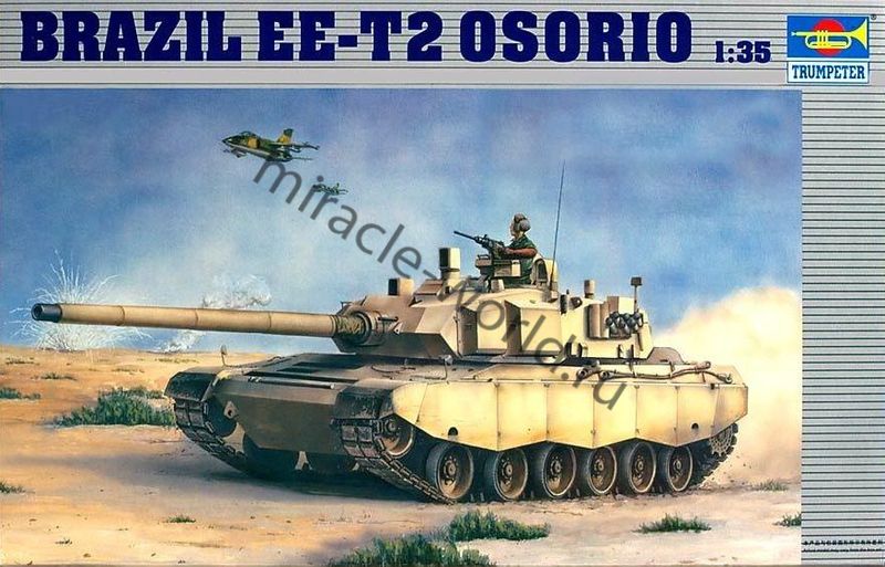 Сборная модель бразильского основного боевого танка Osorio EE-T2 в масштабе 1/35 от фирмы Trumpeter (артикул 00333).
