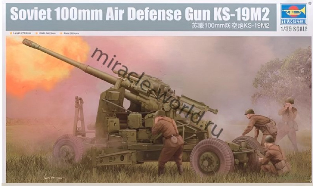 Сборная модель советского зенитного орудия 100-мм зенитная пушка КС-19М2 в масштабе 1/35 от фирмы Trumpeter (артикул 02349).