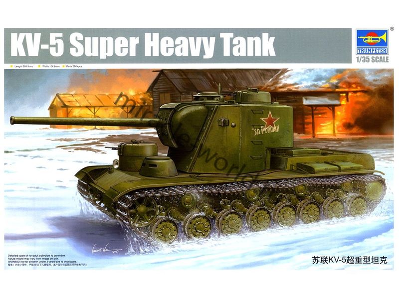 Сборная модель советского сверхтяжелого танка прорыва КВ-5 (объект 225) в масштабе 1/35 от фирмы Trumpeter (артикул 05552).