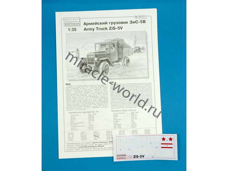Сборная модель советского грузового автомобиля Автомобиль (З) тип 5В в масштабе 1/35 от фирмы Восточный Экспресс / Eastern Express (артикул 35151).