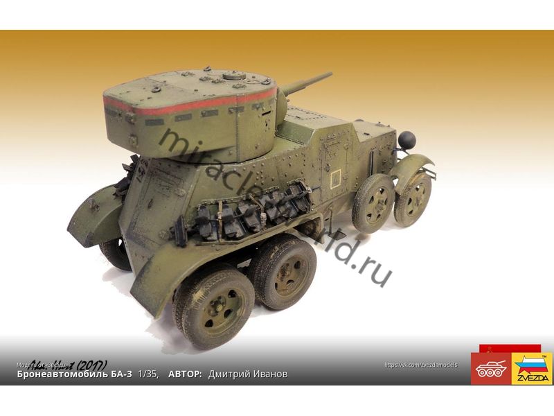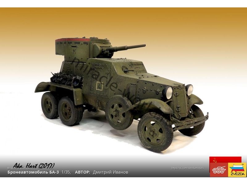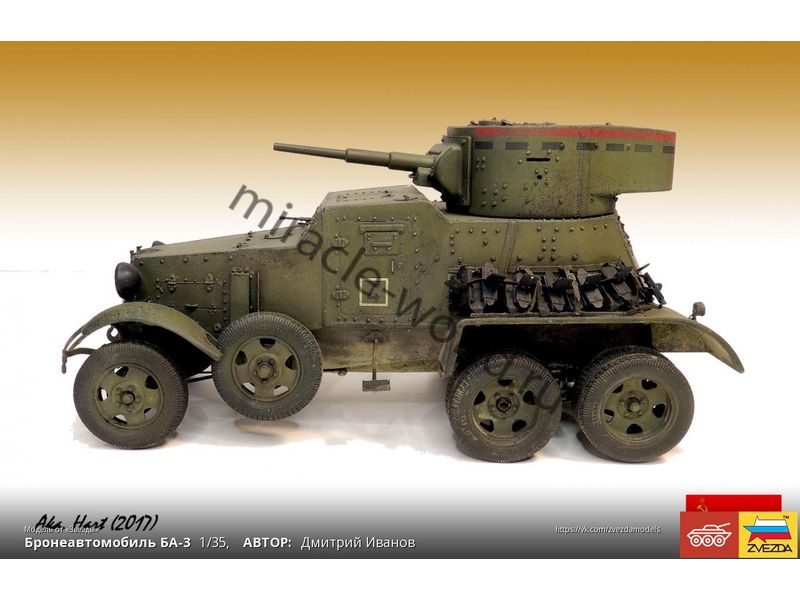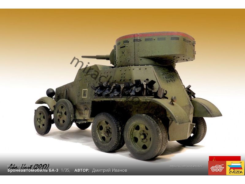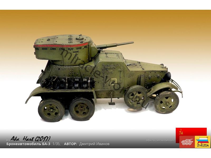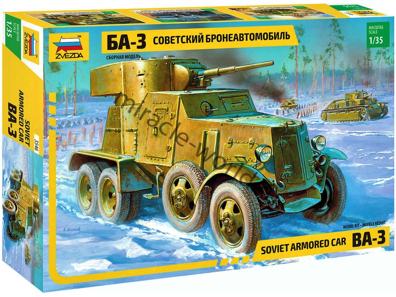 Сборная модель советского среднего бронеавтомобиля БА-3 в масштабе 1/35 от фирмы Звезда / Zvezda (артикул 3546).