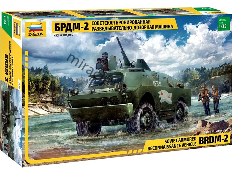Сборная модель советской боевой разведывательной-дозорной машины БРДМ-2 в масштабе 1/35 от фирмы Звезда / Zvezda (артикул 3638).