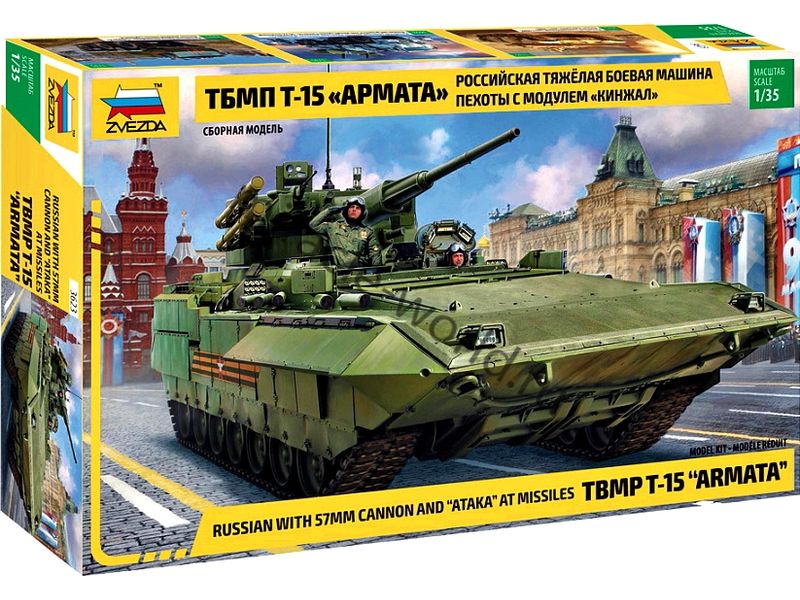 Сборная модель российской ТМБМП Т-15 "Армата" с боевым модулем «Кинжал» в масштабе 1/35 от фирмы Звезда / Zvezda (артикул 3623).