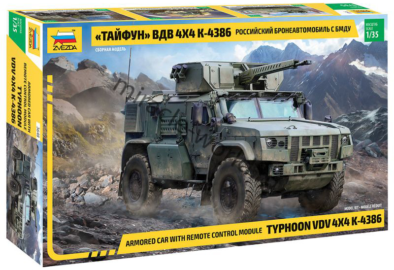 Сборная модель российской специальной боевой машины К-4386 «Тайфун-ВДВ» с боевым модулем 32В01 в масштабе 1/35 от фирмы Звезда / Zvezda (артикул 3648).