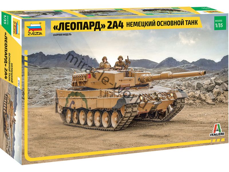 Сборная модель немецкого основного боевого танка Leopard 2A4 в масштабе 1/35 от фирмы Звезда / Zvezda (артикул 3703).