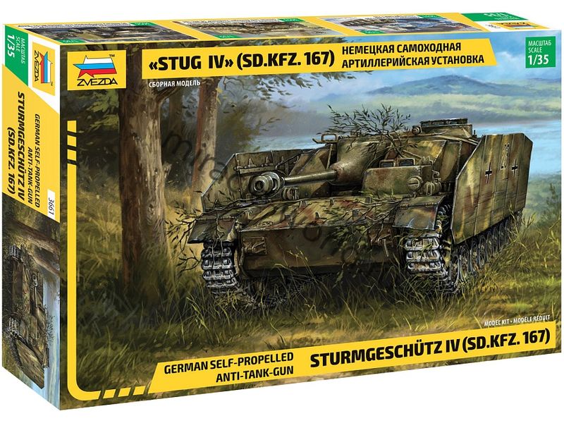 Сборная модель немецкого штурмового орудия Sd.Kfz.167 Pz.Kpfw.IV StuG IV в масштабе 1/35 от фирмы Звезда / Zvezda (артикул 3661).