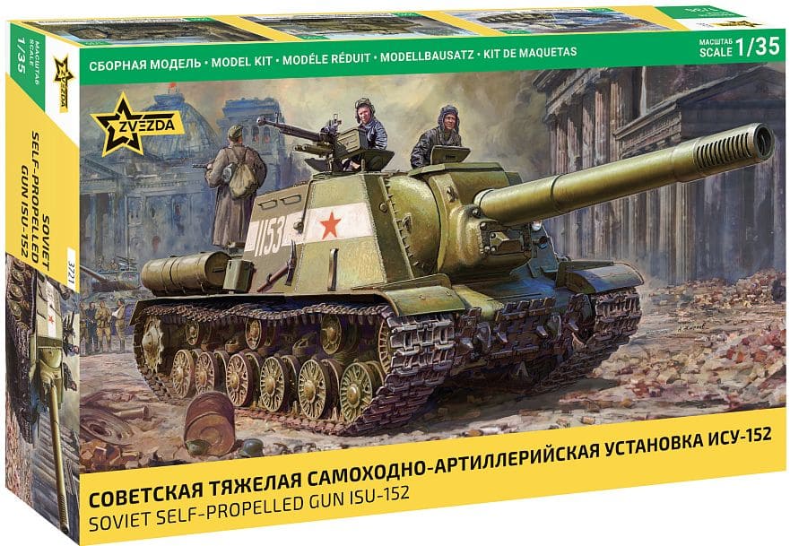Сборная модель Советское тяжелое самоходное артиллерийское орудие в масштабе 1/35 от фирмы Звезда / Zvezda (артикул 3721).