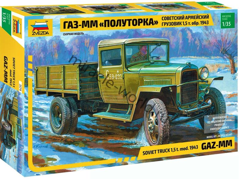 Сборная модель советского грузового автомобиля повышенной проходимости ГАЗ-ММ в масштабе 1/35 от фирмы Звезда / Zvezda (артикул 3574).