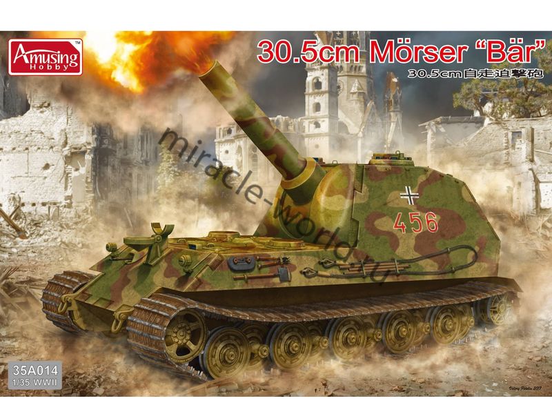 Сборная модель немецкой сверхтяжелой самоходной артиллерийской установки 30.5 cm Morser "Bar" в масштабе 1/35 от фирмы Amusing Hobby (артикул 35A014).