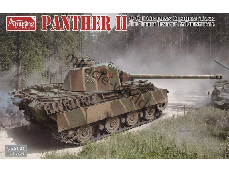 Сборная модель немецкого среднего танка "Panther II" с башней от Rheinmetall в масштабе 1/35 от фирмы Amusing Hobby (артикул 35A040).