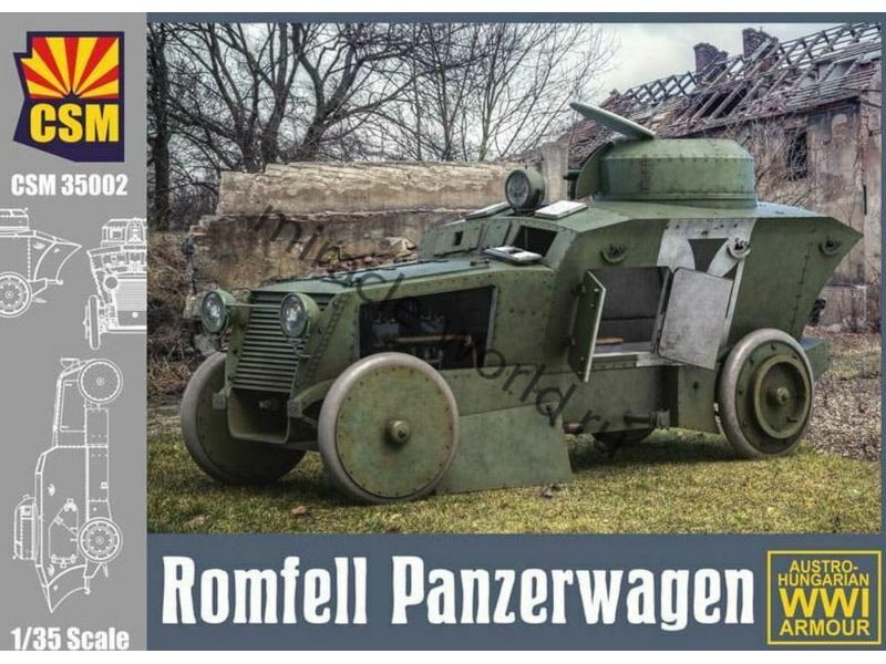 Сборная модель австро-венгерского легкого бронеавтомобиля Romfell Panzerwagen в масштабе 1/35 от фирмы CSM /Copper State Models (артикул 35002).