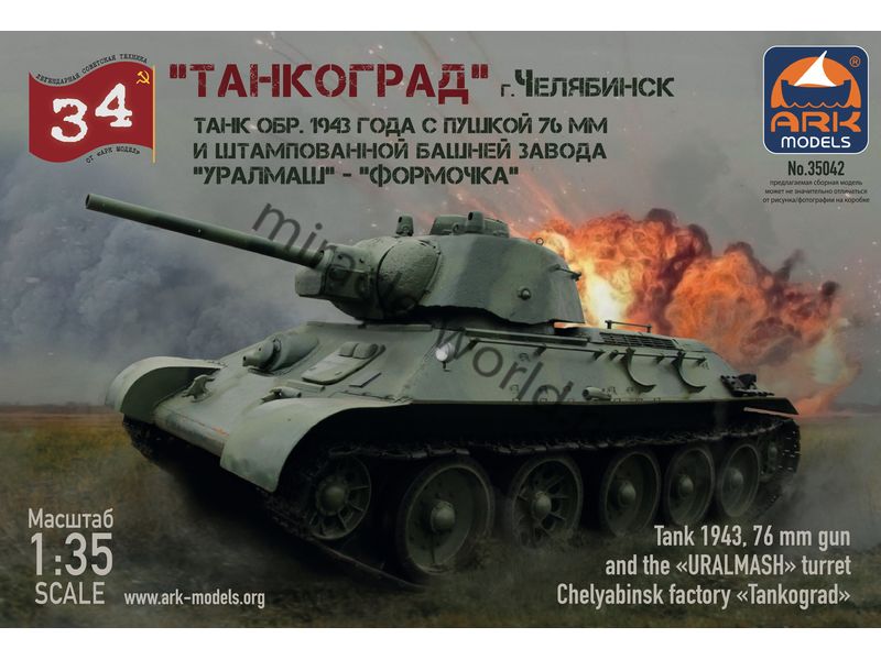 Сборная модель среднего танка Танк тип 34/76 образца 1943г. (Челябинский завод «Танкоград») в масштабе 1/35 от фирмы ARK Models (артикул 35042).