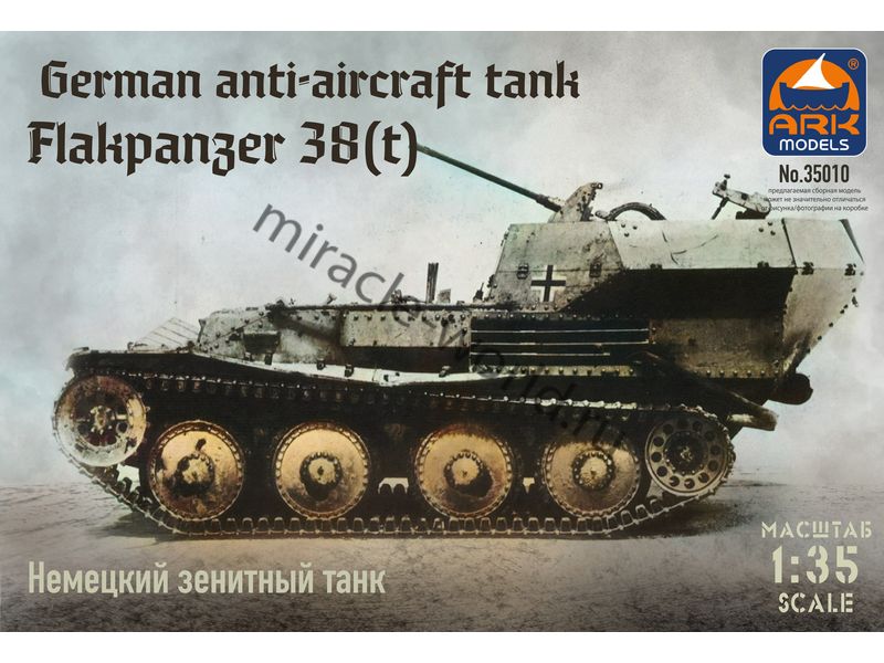 Сборная модель немецкой зенитной самоходной установки Sd.Kfz.140 Flakpanzer 38(t) "Gepard" на базе Pz.Kpfw.38(t) в масштабе 1/35 от фирмы ARK Models (артикул 35010).