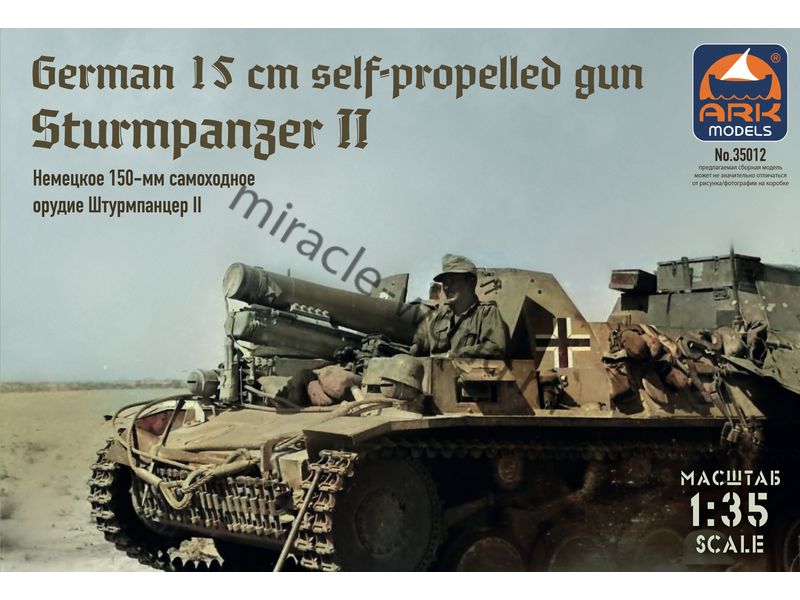 Сборная модель немецкой самоходной артиллерийской установки sIG 33 (Sf) на базе Fgst.Pz.Kpfw.II "Sturmpanzer II / Bison II" в масштабе 1/35 от фирмы ARK Models (артикул 35012).