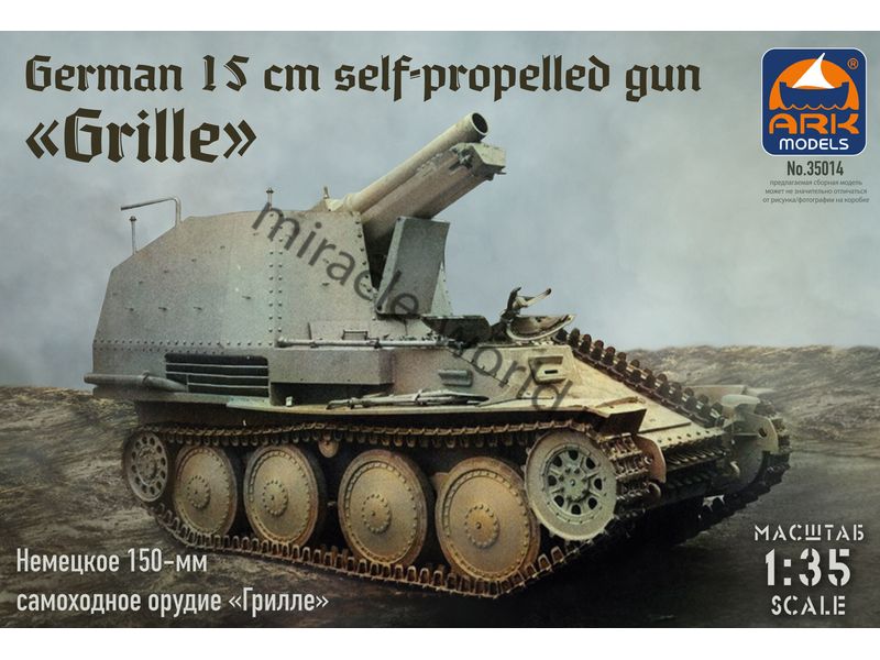 Сборная модель немецкой самоходной артиллерийской установки Sd.Kfz.138/1 Ausf.H "Grille" sIG 33/1 (150-мм) / Sturmpanzer 38(t) в масштабе 1/35 от фирмы ARK Models (артикул 35014).