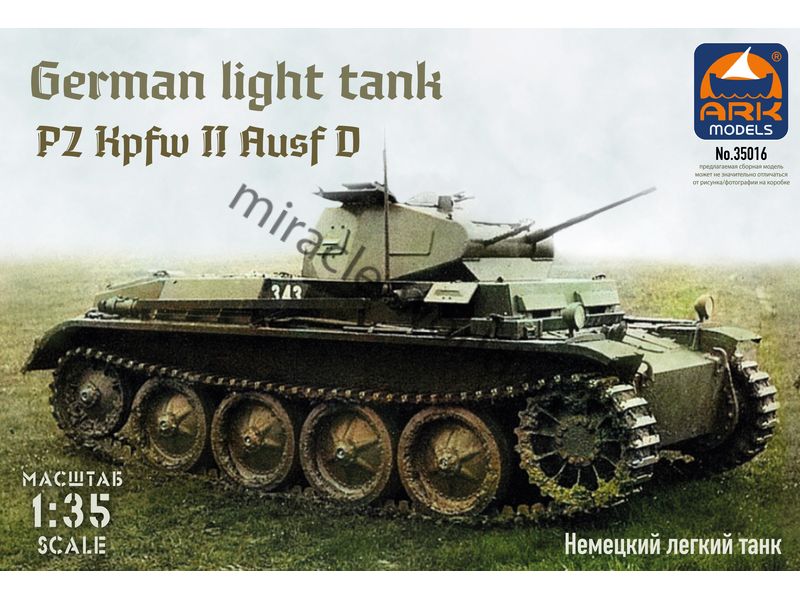 Сборная модель немецкого легкого танка Sd.Kfz.121 Pz.Kpfw.II Ausf.D в масштабе 1/35 от фирмы ARK Models (артикул 35016).