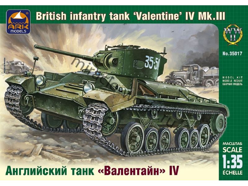 Сборная модель британского пехотного танка Mk.III Valentine IV в масштабе 1/35 от фирмы ARK Models (артикул 35017).