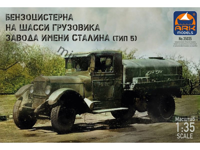 Сборная модель советского автомобиля - топливозаправщика БЗ-39 на базе Автомобиль (З) тип 5 в масштабе 1/35 от фирмы ARK Models (артикул 35035).