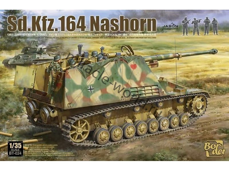 Сборная модель немецкой противотанковой самоходной артиллерийской установки Sd.Kfz.164 "Nashorn" (88-мм) с экипажем (4 фигуры) в масштабе 1/35 от фирмы Border Model (артикул BT-024).
