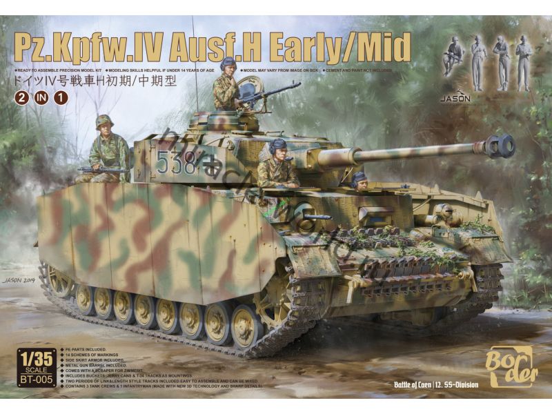 Сборная модель немецкого среднего танка Sd.Kfz.161 Pz.Kpfw.IV Ausf.H (early/middle) с экранами и экипажем в масштабе 1/35 от фирмы Border Model (артикул BT-005).