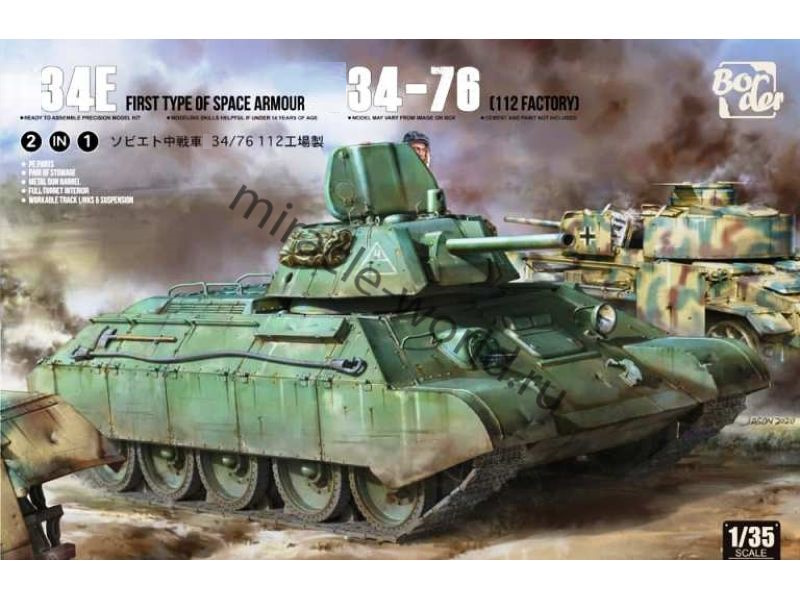 Сборная модель среднего танка Танк тип 34/76 с экранами в масштабе 1/35 от фирмы Border Model (артикул BT-009).