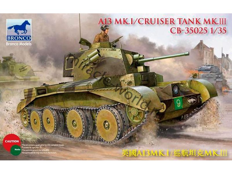 Сборная модель британского крейсерского танка Cruiser Mk.III / A13 Mk.I в масштабе 1/35 от фирмы Bronco Models (артикул CB35025).