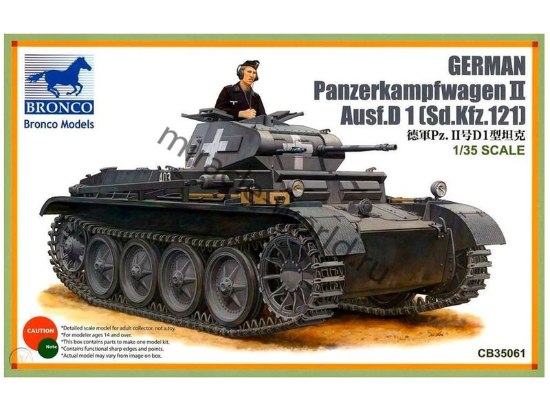 Сборная модель немецкого легкого танка Sd.Kfz.121 Pz.Kpfw.II Ausf.D в масштабе 1/35 от фирмы Bronco Models (артикул CB35061).