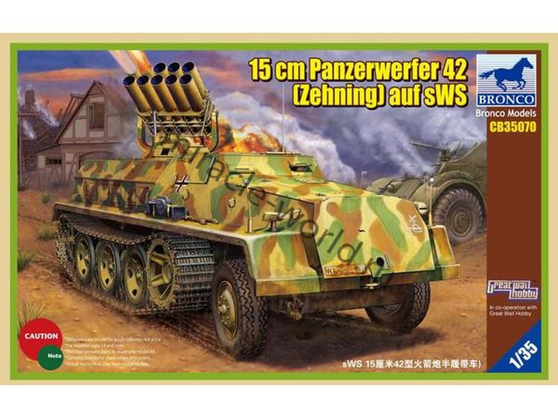 Сборная модель немецкой реактивной системы залпового огня Sd.Kfz.4/1 Panzerwerfer 42 (150- мм) auf Selbstfahrlafette на базе sWS в масштабе 1/35 от фирмы Bronco Models (артикул CB35070).