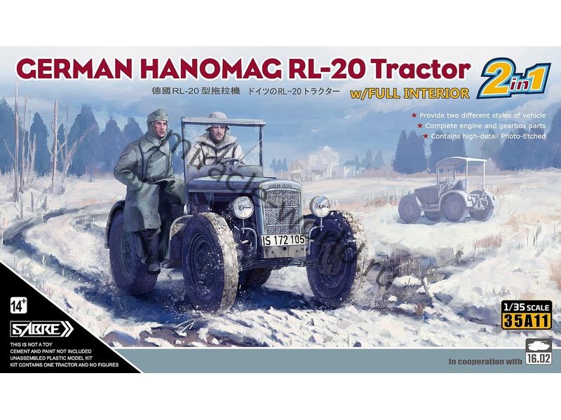 Сборная модель немецкого трактора с интерьером Hanomag RL 20 / RL-20 в масштабе 1/35 от фирмы Sabre (артикул 35A11).
